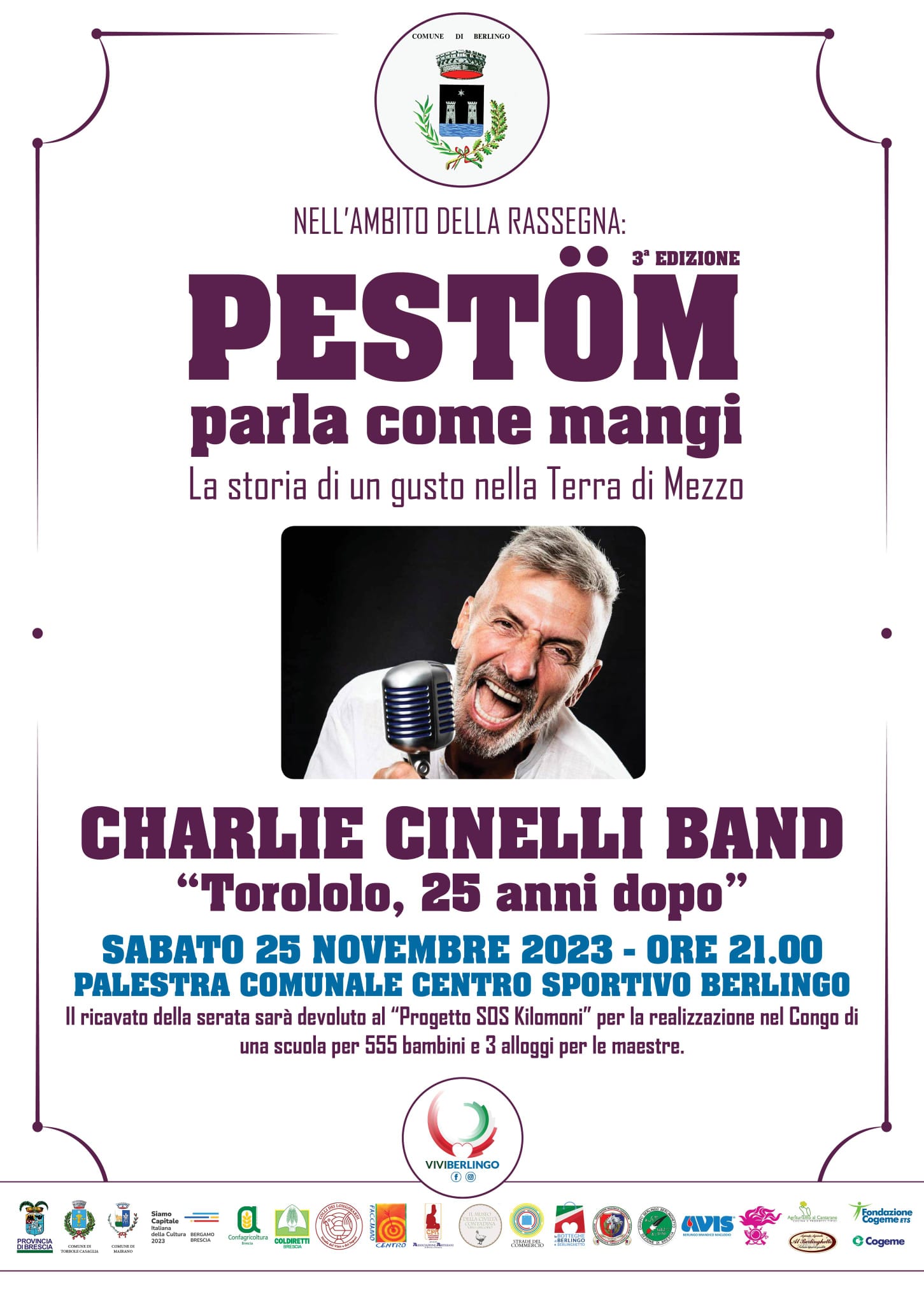 Sabato 25 novembre, presso la palestra comunale del Centro Sportivo del paese, sarà la volta del concerto di Charlie Cinelli, che ha scelto Berlingo per il suo nuovo tour dal titolo "Torololo, 25 anni dopo".