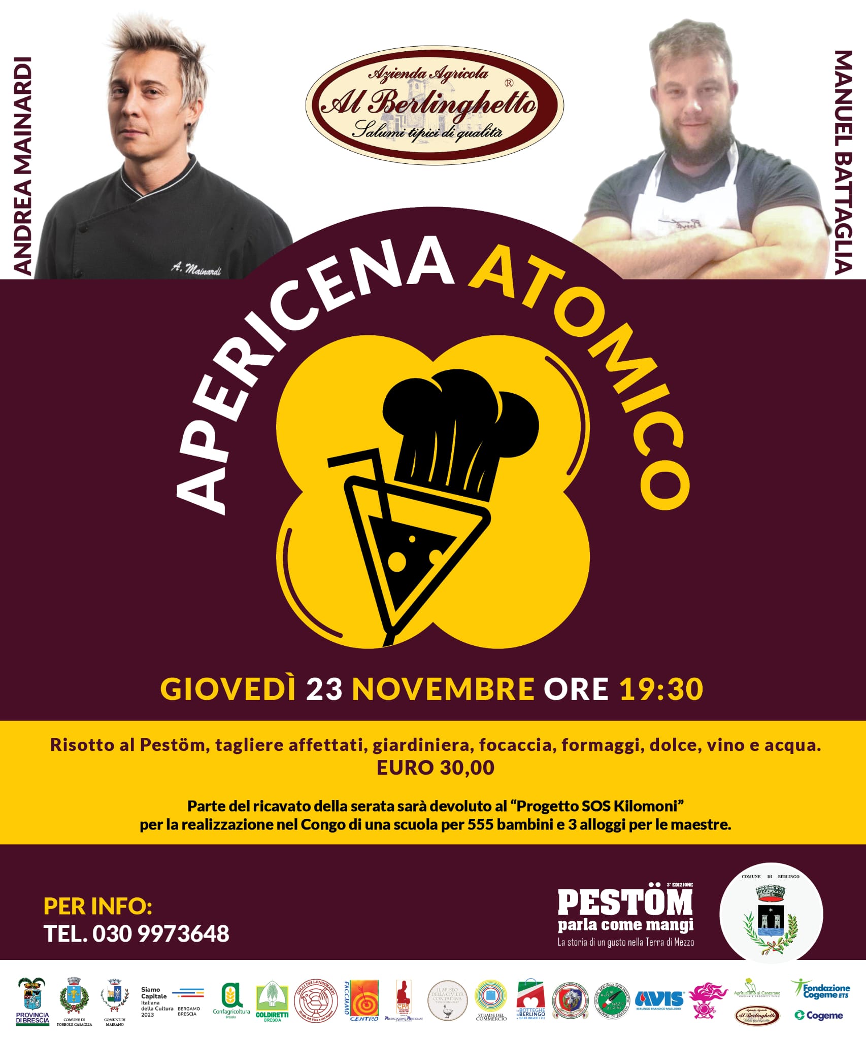 Giunta al suo terzo anno consecutivo, la rassegna promossa dall'amministrazione di Berlingo, quest'anno parte con la performance del campione di braccio di ferro e del famoso chef, che per i presenti hanno in serbo un “Apericena Atomico” con un menù a tema: risotto al pestöm, tagliere di affettati, giardiniera, focaccia, formaggi e il dolce “Battito” dell'Associazione Pasticceri Bresciani, il tutto accompagnato con i Vini della Strada dei Vini dei Colli Longobardi al costo di 30,00 euro, parte dei quali andranno a finanziare la costruzione di una scuola in Congo. Ad anticipare la performance della coppia di bresciani, la presentazione ufficiale, con le istituzioni, della nuova edizione dell'evento con tutte le novità in calendario.
